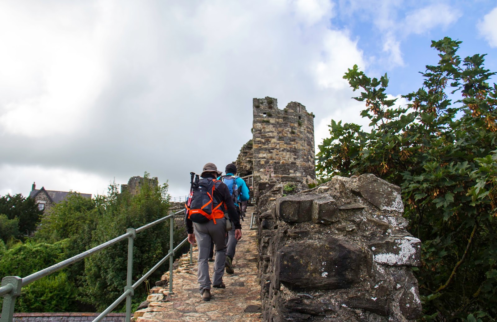 Por un puente metálico cruzamos la vía férrea y bordeamos la margen del río, que resguardado sirve de embarcadero; esta es una zona protegida por su hábitat, nos acompañan enormes ejemplares de árboles con sus ramas inclinadas casi tocando las aguas. Nos acercamos a la zona amurallada el pueblo medieval de Conwy.