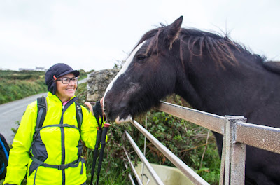 Viene un bonito tramo donde el verde de los pastos llega prácticamente hasta el mar, nosotros que somos de secano nos sentimos como niños con zapatos nuevos. Para sorpresa, algo más alejados de la orilla, hay pastando una manada de caballos salvajes, que nos permiten acercarnos prudentemente.