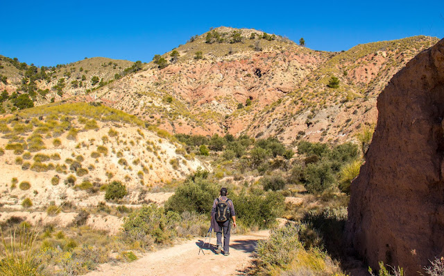 Este tramo de unos dos kilómetros es el mas tedioso de la ruta, que sin embargo, al lindar con el Barranc de les Salines o de Silim nos ofrece ventanas a su cauce multicolor de arcillas y margas en tonos ocres, verdes y rojizos.