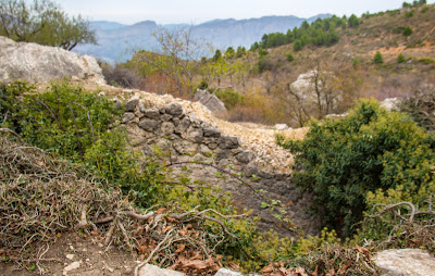 Llegamos a la Font de la Forata, su abrevadero de piletas escalonadas son otro emblema de esta sierra, que debido a las desviaciones que sufre, cada vez aporta menos agua. Giramos a la derecha por el camino.