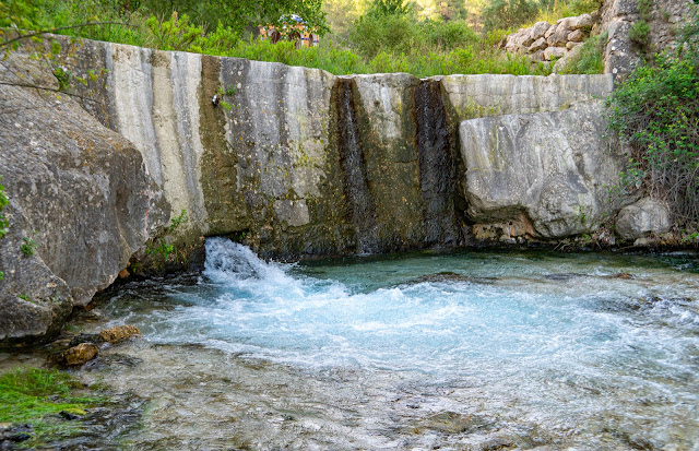 Regresamos hasta la entrada al Molinar. El agua del manantial del Molinar surge de una depresión excavada sobre el terreno de forma elíptica (unos 10x9 m) y una profundidad de 4 m. El caudal medio se estima en unos 375 l/seg. y actualmente cerca del 60% del agua consumida en Alcoy procede de este manantial.