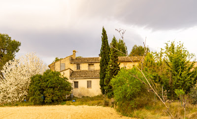 A continuación nos sale al paso la Casa Nova, otra gran masía a la que han ido adosando construcciones. Tiene un espectacular cerezo en plena floración que parece no haber sido podado, algunos cipreses y una bonita araucaria.